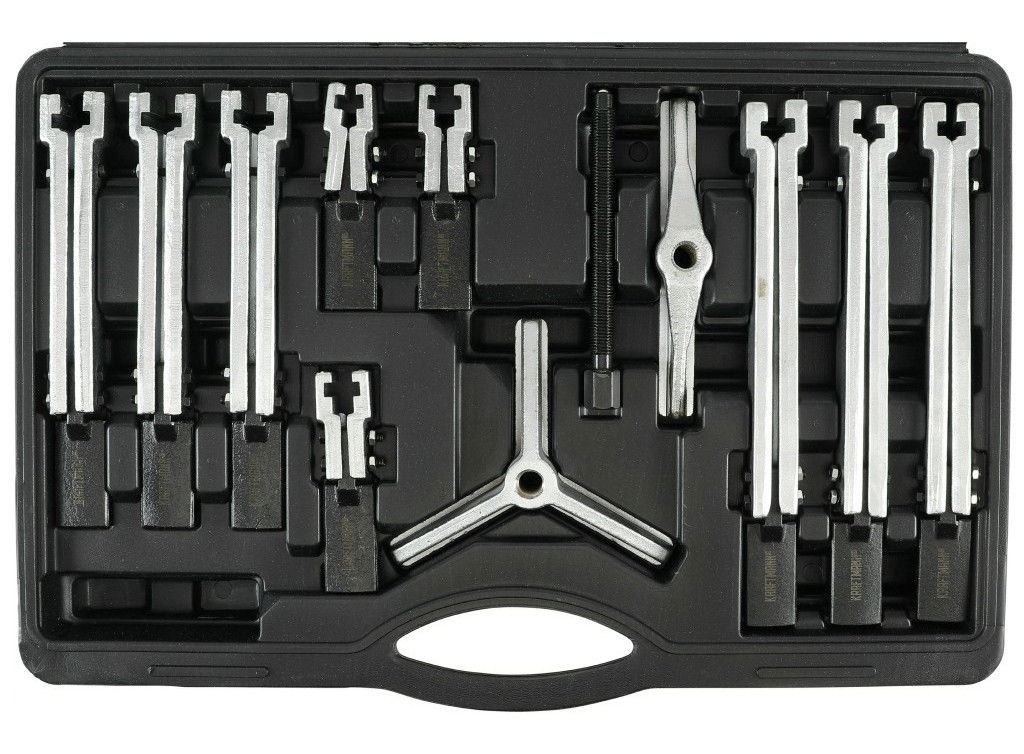 Két- és háromkörmös lehúzóként is használható, csúszószáras, 12 darabos csapágylehúzó készlet.